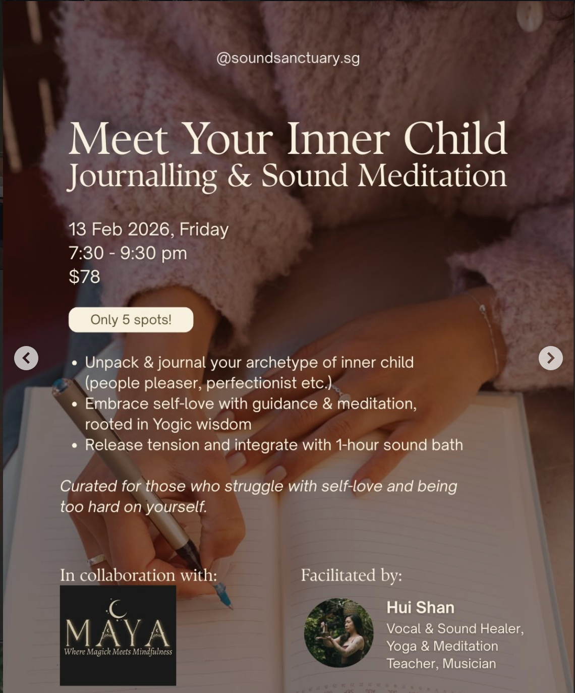 If you’ve been yearning to slow down and be held in a grounding, meditative and safe cocoon, this sound journey is for you.